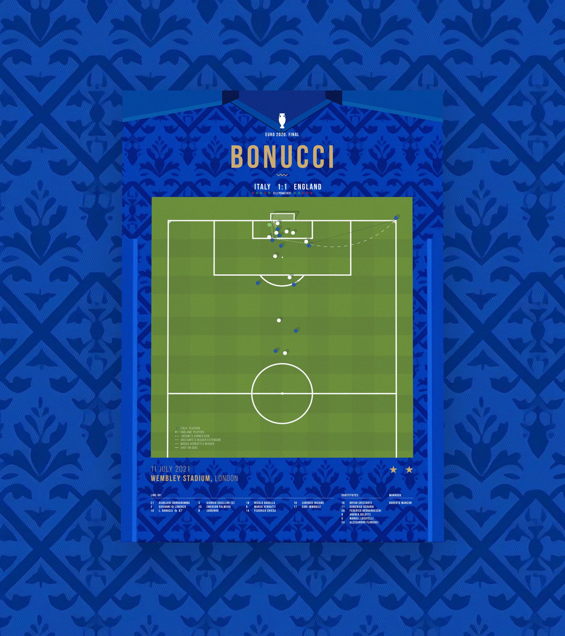 Bonucci scored the equalizer in Italy’s epic Euro Finals win against England. Corner by Insigne, Cristante’s header extension for Verratti who in diving takes the pole after Pickford’s touch, Bonucci pounces on the ball and bags!